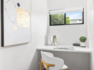 The ground level has a private front courtyard for soaking up the sun and getting together with friends. Just inside is a relaxing study/reading space, perfect for those who like to work from home and has access to the tandem garage.