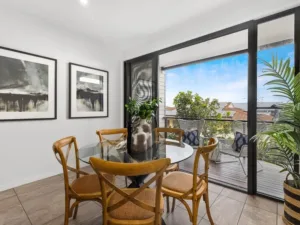 Upstairs is the family’s private getaway with three good-sized bedrooms including a lovely master suite with a Juliette-style balcony, walk-in robe and ensuite. The two family bedrooms have built-in robes and their own contemporary bathroom steps away.