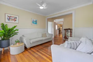 Beautifully presented, rich in character and harnessing serene scenes across the tranquil treetops, the house invites you inside, where classic casement windows, ornate cornices, ceiling roses and timber floors shine with the charm of yesteryear.