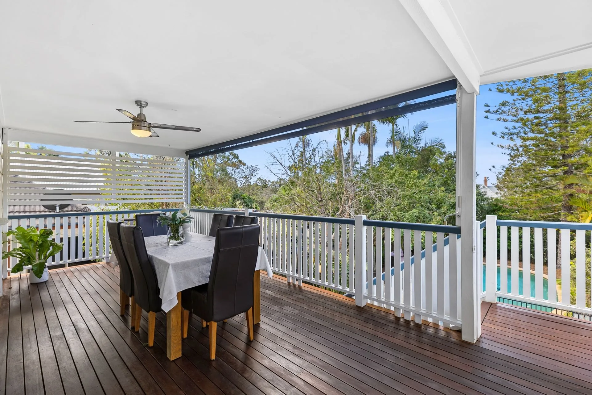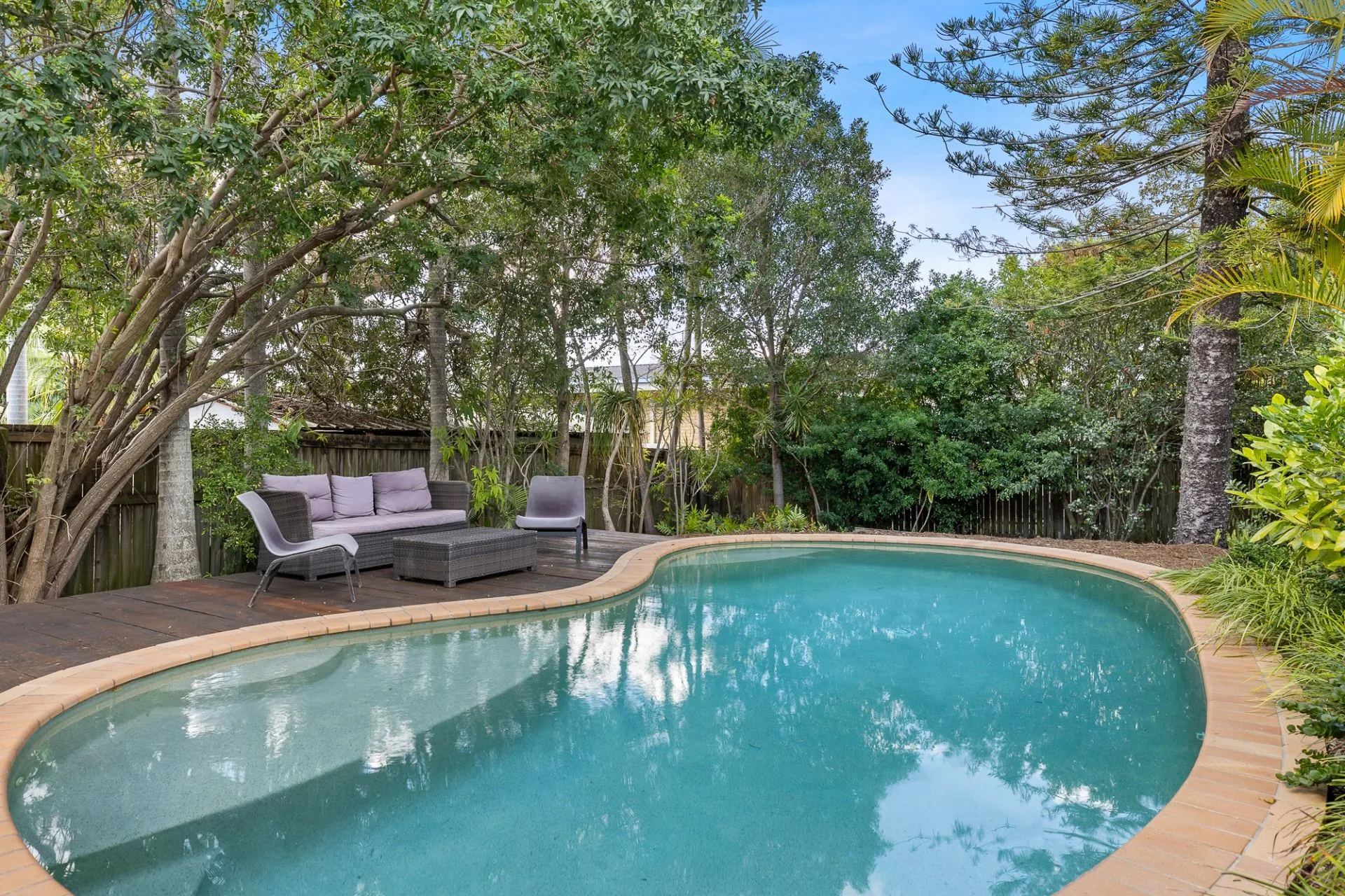 There are two alfresco zones to keep you in total comfort year-round, one at the front with privacy screens and a larger deck for family gatherings towards the rear. It looks across the easy to maintain yard and pool with a sundeck.