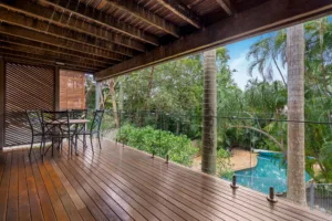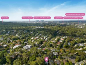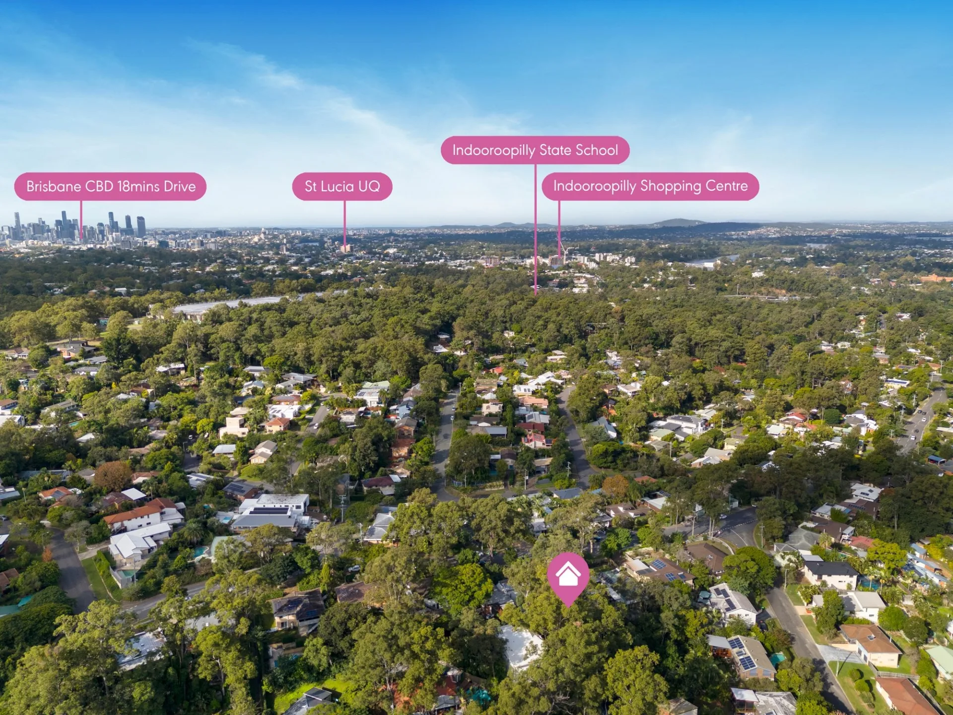 The lower floor is completed by the second deck off the living area with stairs that lead down to the in-ground pool and fully fenced garden with space for children and pets to play. The property features metal security screening and a double carport that can hosts up to four vehicles. In catchment of Chapel Hill State School and Indooroopilly State High School, the home also neighbours prestigious private schools including St Peter’s Lutheran College, Brisbane Boys’ College and University of Queensland. Minutes from Indooroopilly Shopping Centre and Kenmore Village, the address provides easy access to major arterials including the M3 and Legacy Way Tunnel, in addition to numerous bus stops within walking distance of the home.