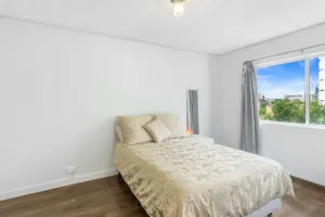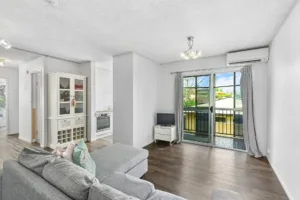 Both bedrooms are set at one end of the floorplan including the generous master with a built-in robe and easy access to the bathroom/laundry. An in-unit Samsung washing machine and dryer combined front-loader, with a digital inverter, adds convenience plus there’s a separate toilet, built-in linen storage, an electric hot water system and a lockable car space.