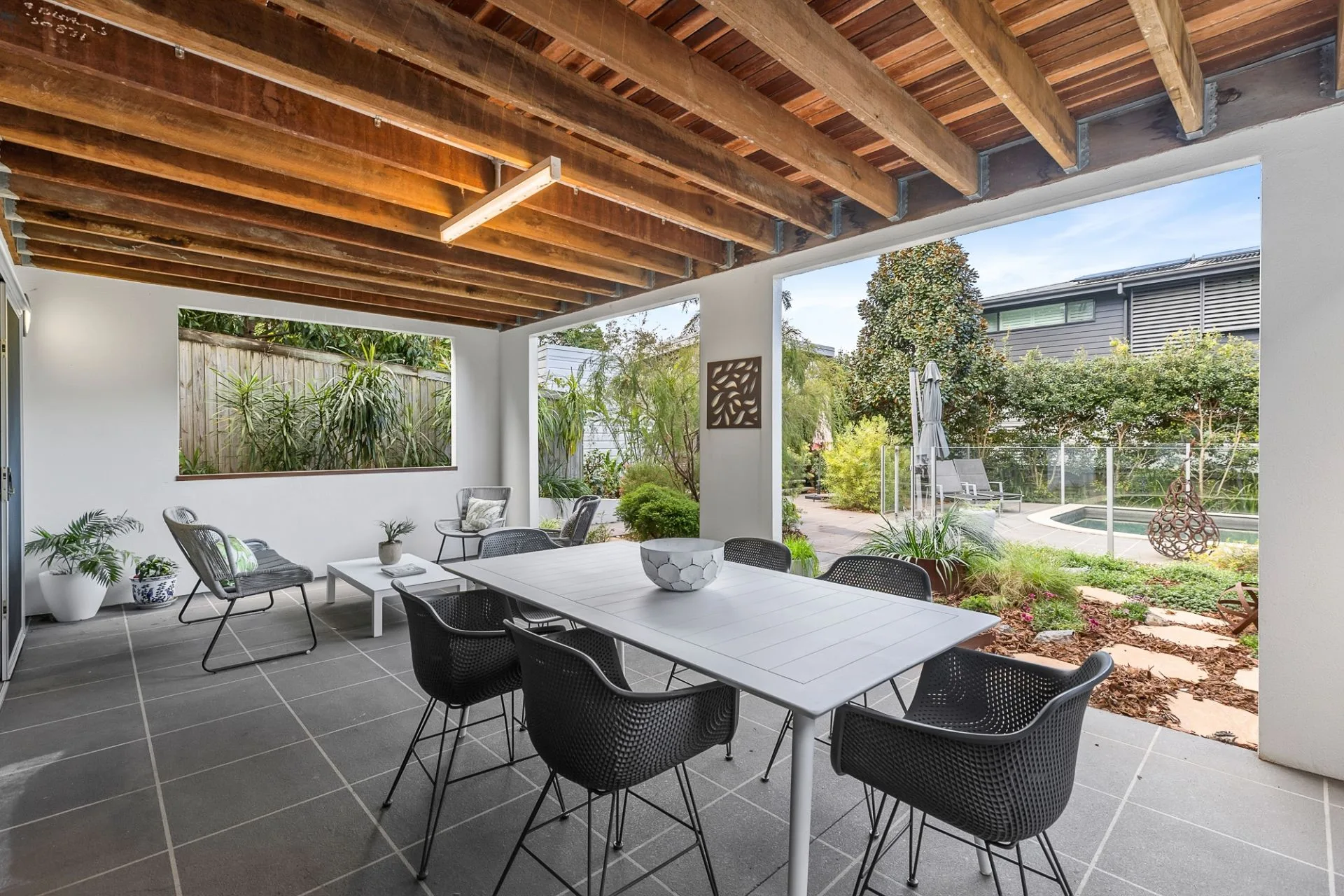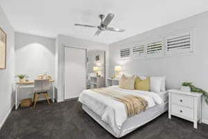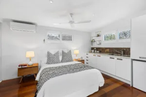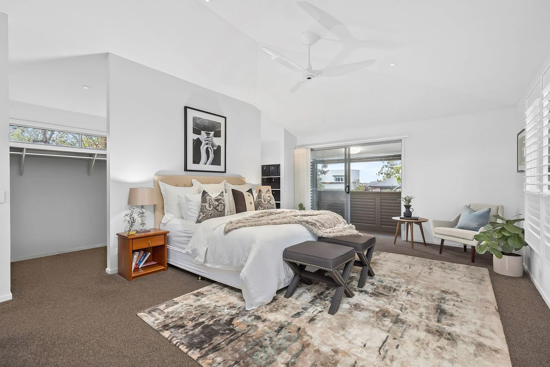The main residence has four oversized bedrooms, three bathrooms, and a laundry. The top floor is dedicated to an exclusive parent’s retreat with a lofty, light-filled bedroom boasting a study, balcony, generous walk-in robe and a dual vanity ensuite.