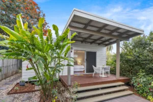 The studio is positioned nearby the pool and features a kitchenette and bathroom which could be ideal as a study or office with its own separate entry.