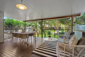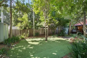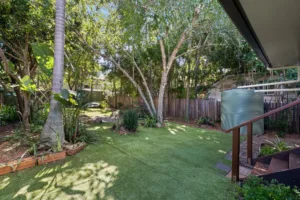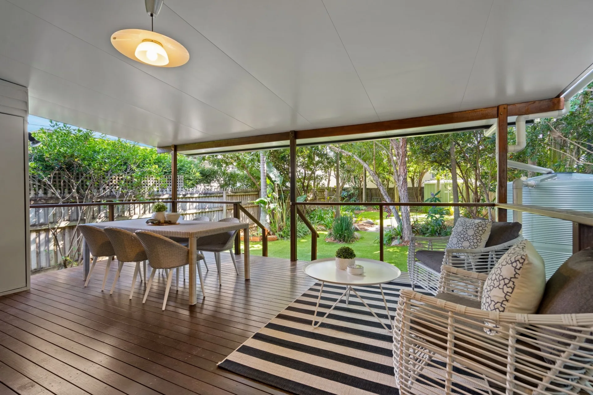 The air-conditioned living and dining areas are serviced by the contemporary one-wall kitchen with Granite benchtops, gas cooktop, oven and dishwasher, with built-in cabinetry and pantry. The living opens out to the large rear deck that overlooks the stunning leafy established backyard, offering a tranquil space to dine, entertain or simply relax and enjoy the peace and privacy of this serene sanctuary. The child and pet-friendly backyard includes a shed and rainwater tank and is laid with artificial turf, so there is no need to spend your weekends maintaining the gardens. The home also features a single carport to the side of the property, a garden shed at the rear of the backyard and laundry facilities off the back deck.