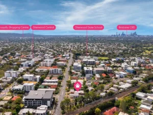 It is nearby the train station, bus stops, cafes, restaurants, shops, major retailers, pharmacies and more all close by. It is near Sherwood State School and Corinda State High School, childcare centres and private schools. It’s close to recreation facilities, including beautiful parkland, the riverfront, sports clubs and playing fields.
