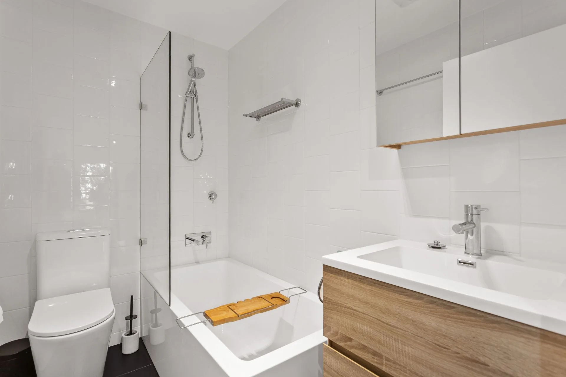 Upstairs you’ll discover three bedrooms all with air conditioning. The master bedroom has a walk-in robe, ensuite and its own private balcony. The two additional bedrooms offer built-in robes and easy access to the main bathroom.