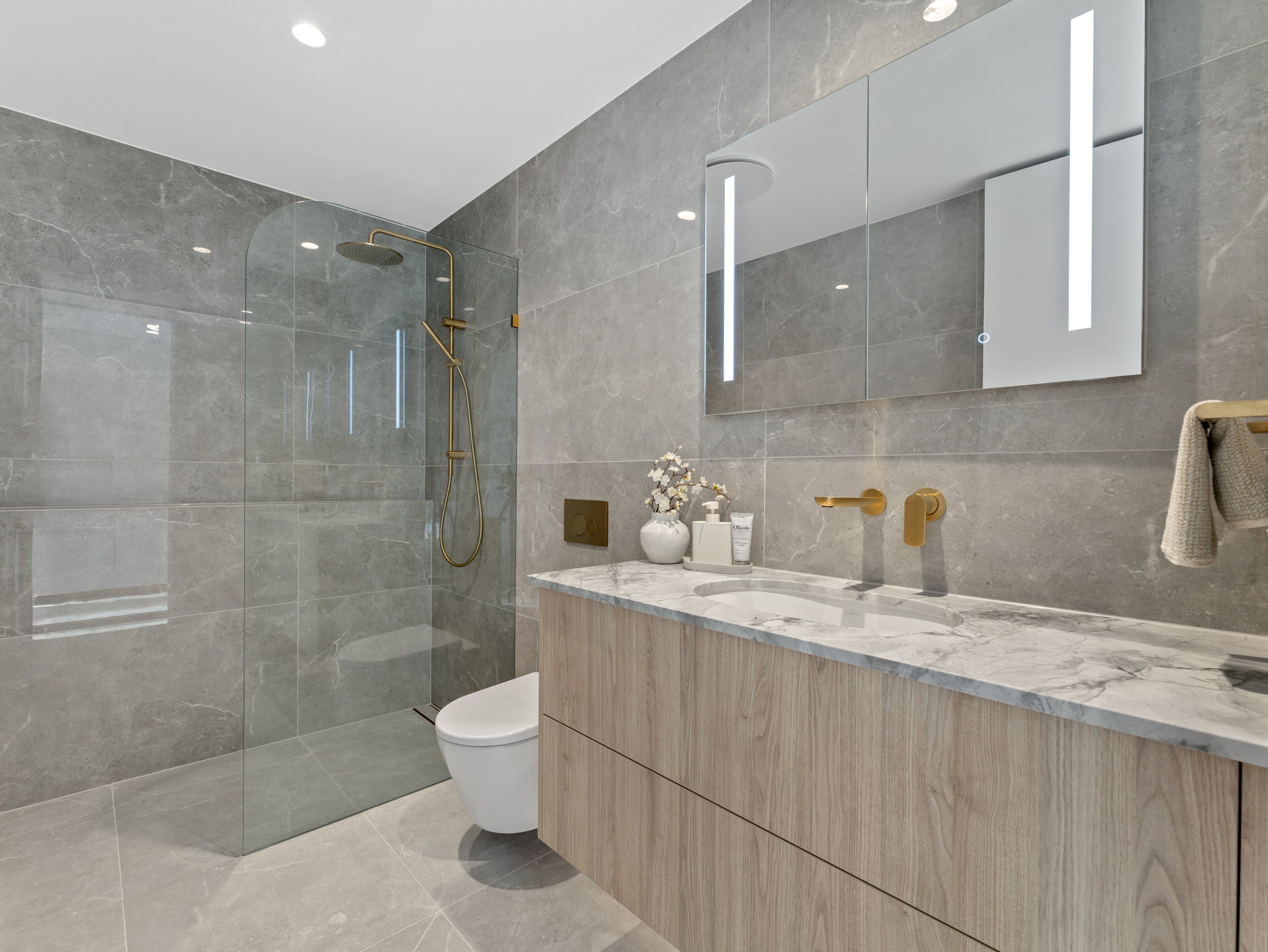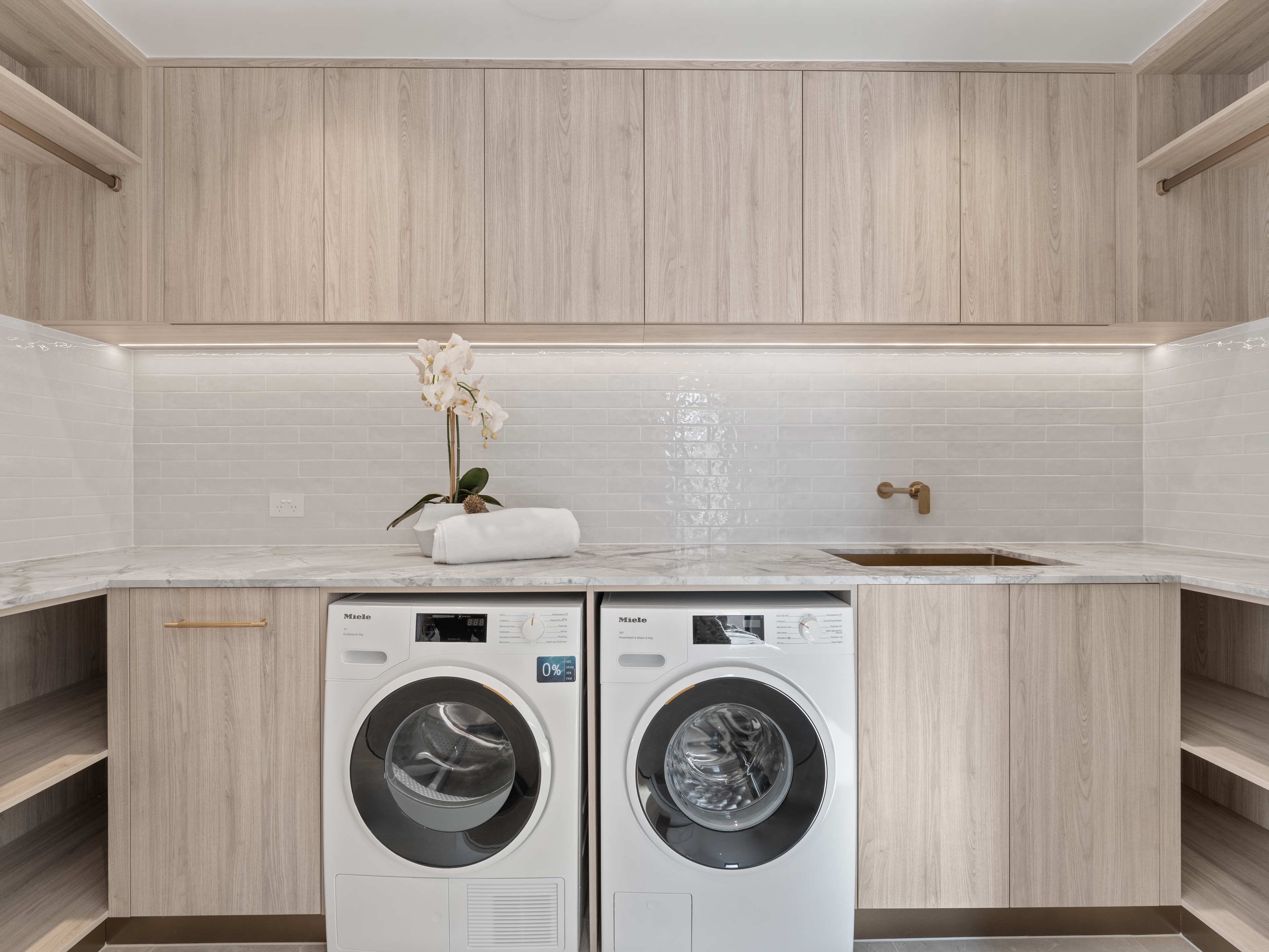 Premium finishes define every space. The designer kitchen features natural stone benchtops, bespoke cabinetry with soft LED lighting and integrated Miele appliances (with five-year warranty), complemented by a fully appointed scullery and wine fridge. The balcony is equally impressive, complete with built-in BBQ and bar fridge, perfect for long lunches or relaxed evenings overlooking the water.