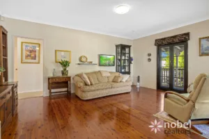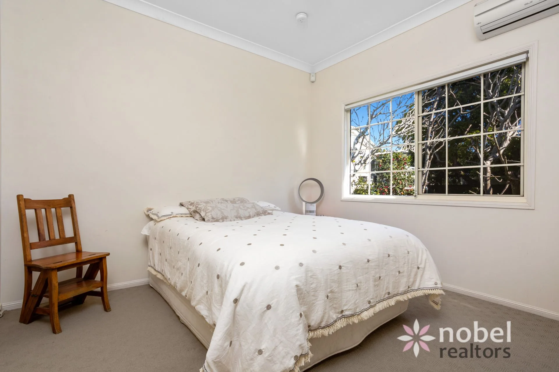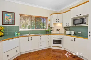Gleaming timber floors flow underfoot throughout including in the large and open kitchen. Preparing meals is made easy thanks to the sweeping benchtops and abundance of storage plus there’s a collection of all-white appliances and a tiled backsplash. Whether you’re an everyday master chef or you simply love preparing meals for friends and family, you’re sure to feel right at home in this culinary haven.