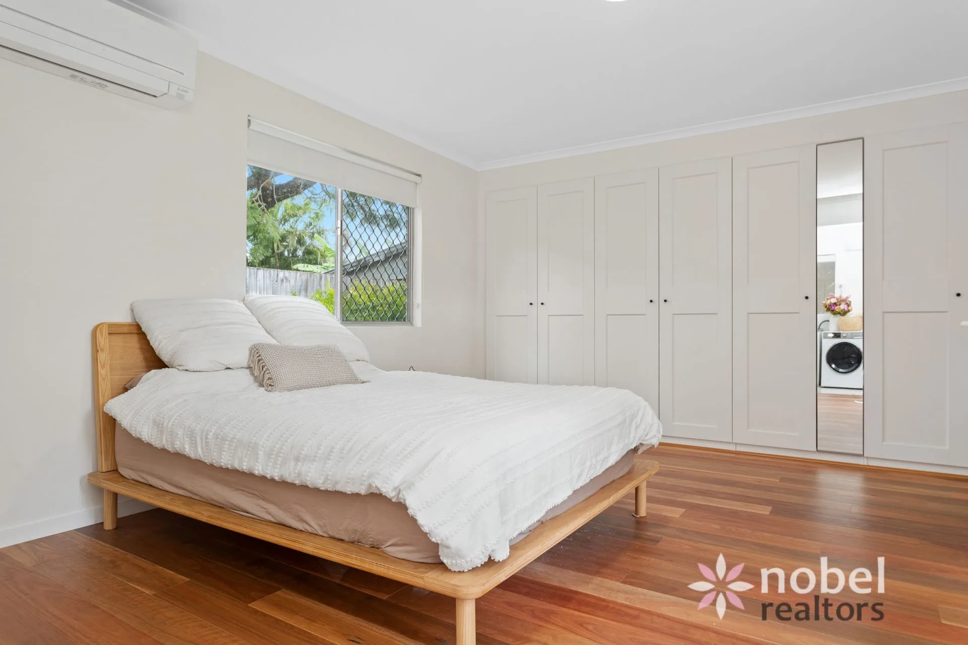 From the kitchen, you can move into the laundry and the air-conditioned and renovated rumpus room with a wall-to-wall built-in robe and an ensuite. This flexible space would make the ideal kids’ playroom, rumpus or hobby room.