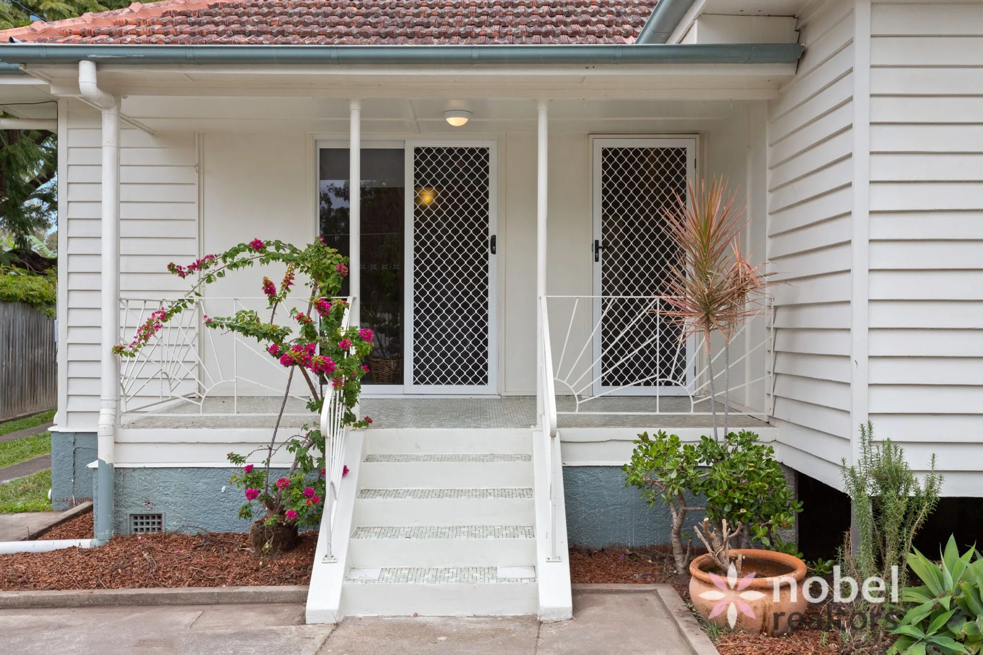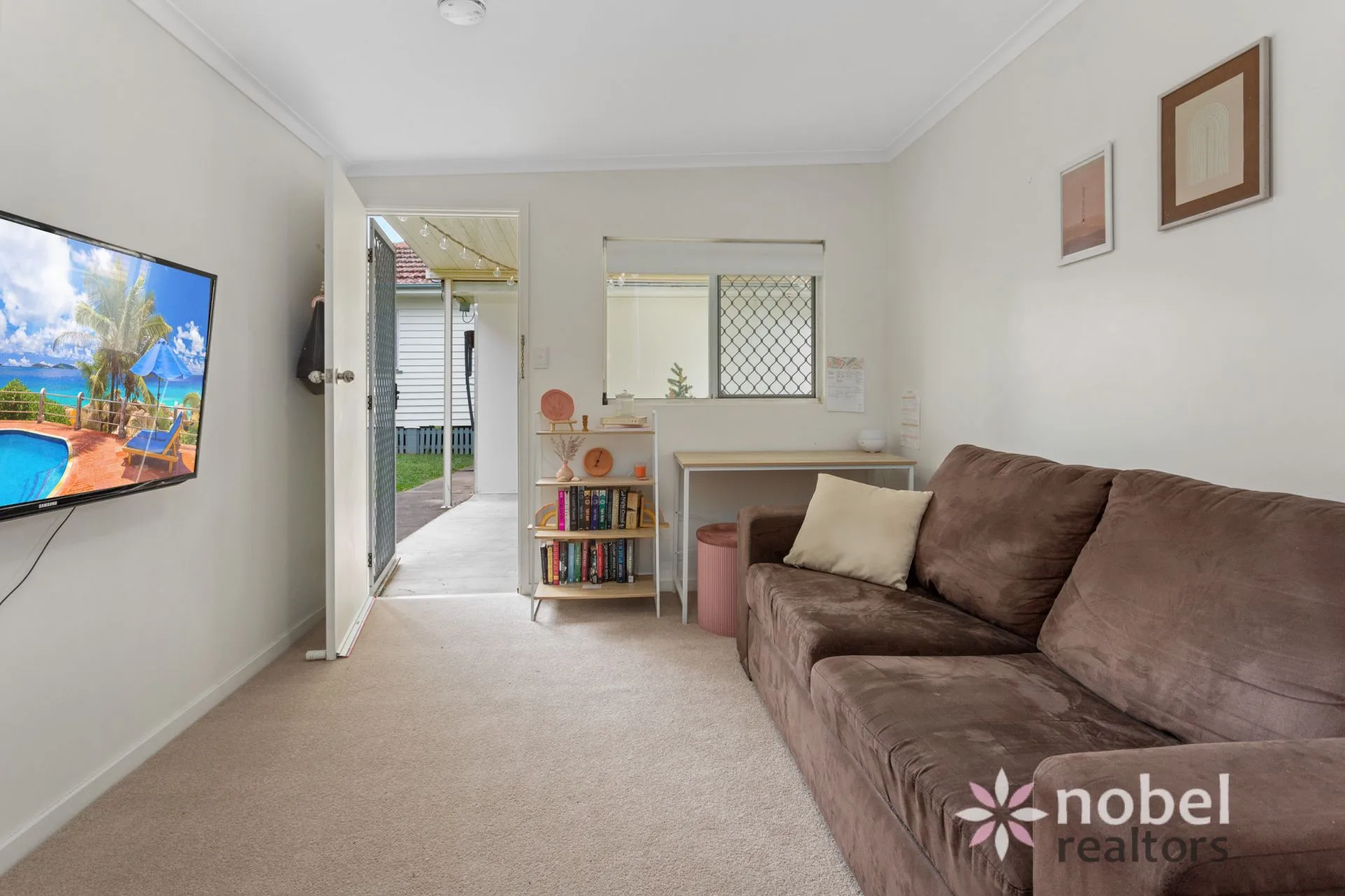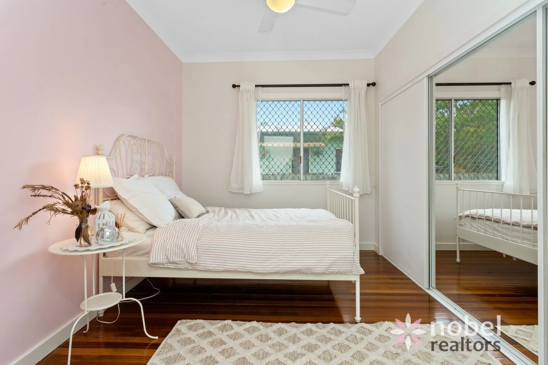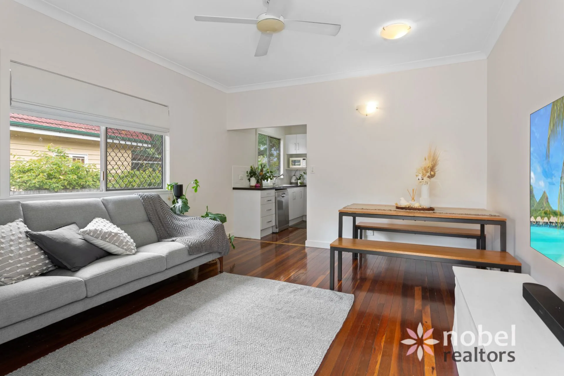 A quaint covered porch welcomes you to the property and lures you inside to explore further. Here, you are treated to a living and dining room with gleaming timber floors, a ceiling fan and an enviable north-east aspect that draws in soft natural light.