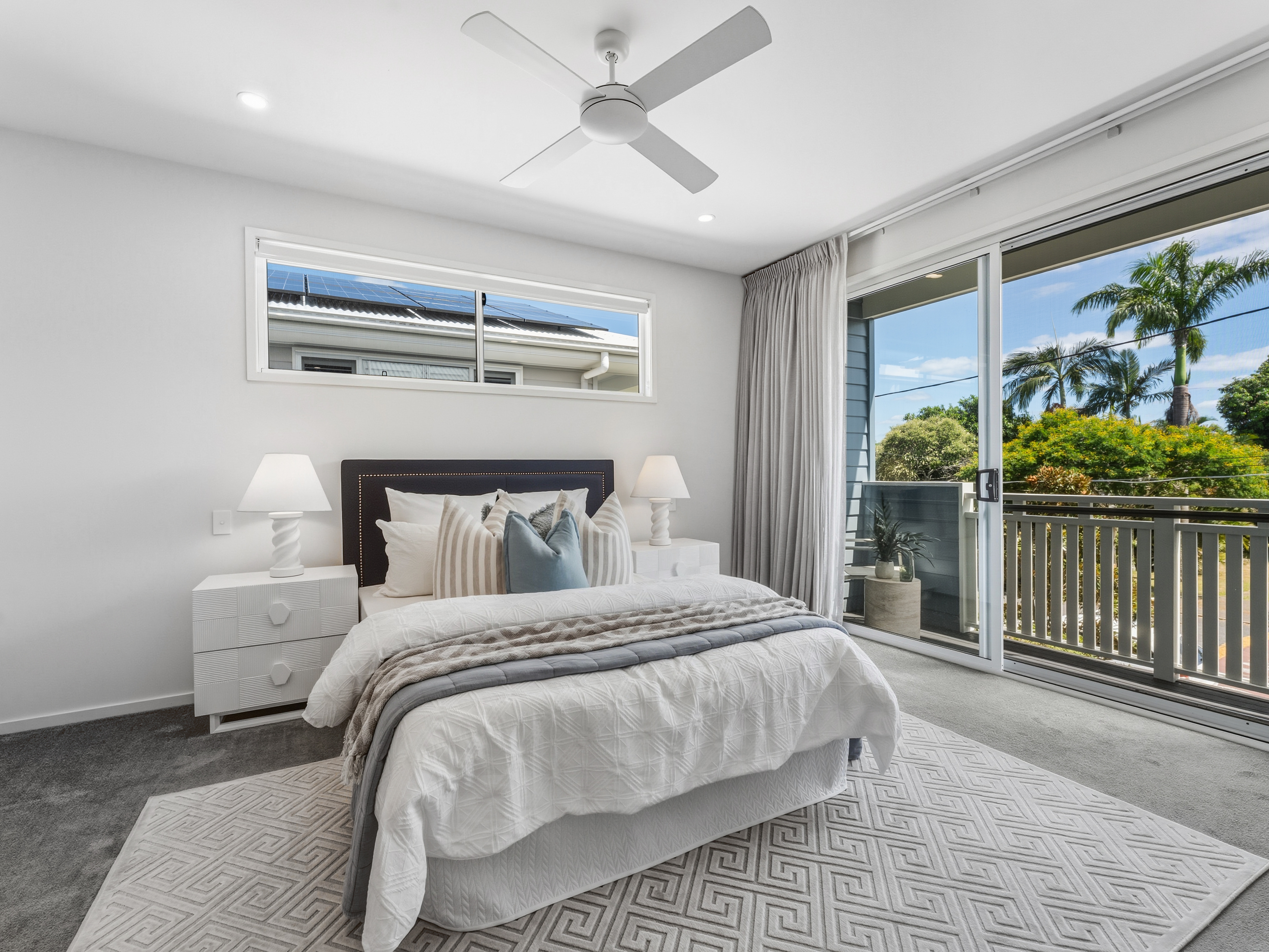 Upstairs, accommodation is generous and private. Each bedroom offers built-in wardrobes, ceiling fans, and high ceilings, while the main bedroom is a true retreat with a beautiful outlook from the balcony, there is a spacious walk-in robe and a large, well-appointed ensuite, a calm space to reset at the end of the day.