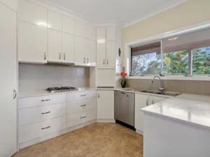 Originally built in the 1950s, it is a quality brick home with ceilings up to 2.8m, polished timber floors and pressed cornicing. Upstairs features a generous lounge and dining area, a modern central kitchen that has Smeg and Miele appliances including a gas cooktop and good storage/bench preparation space.