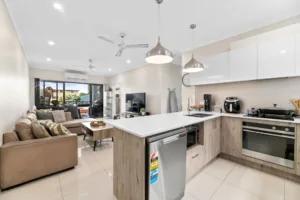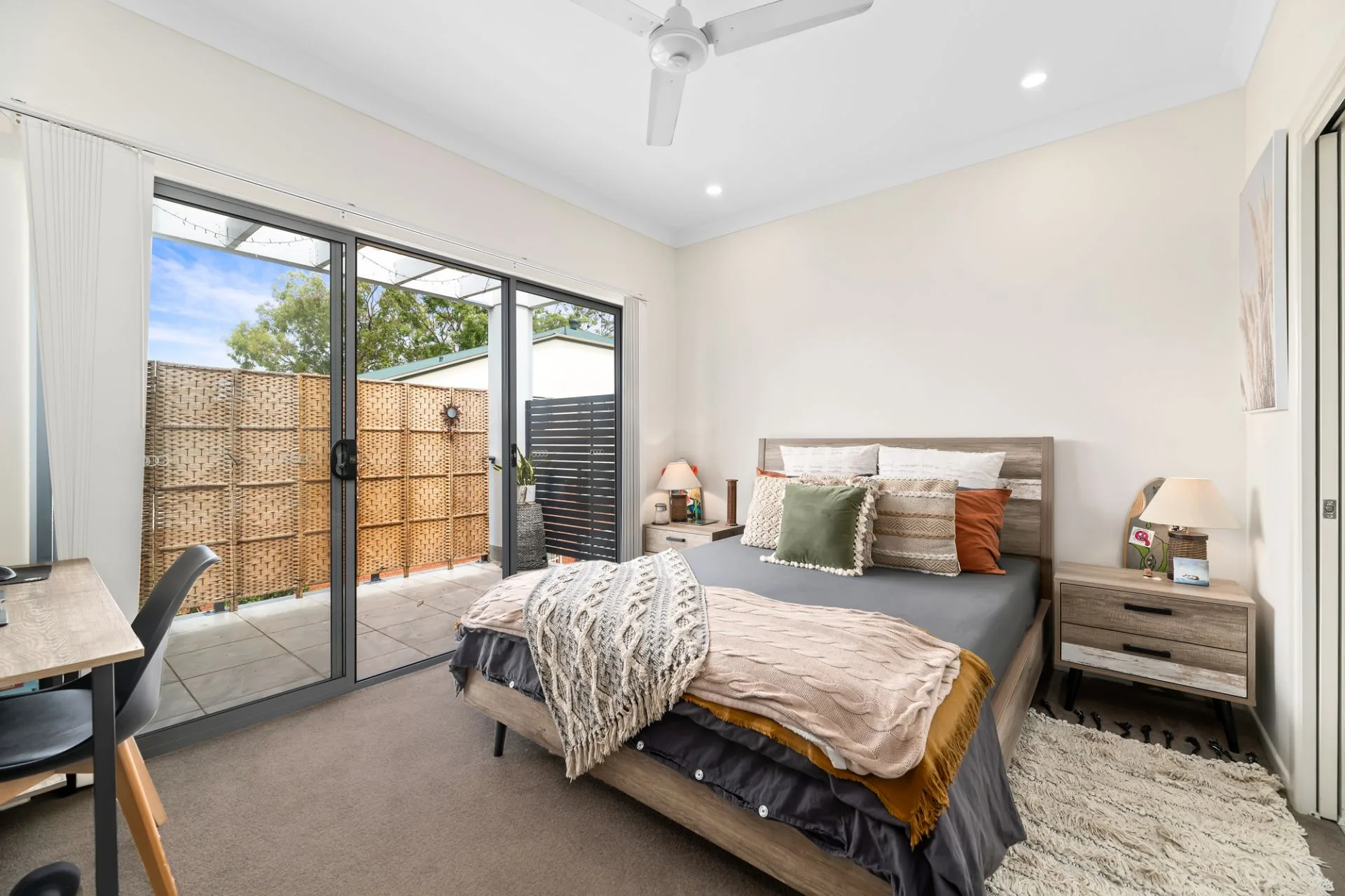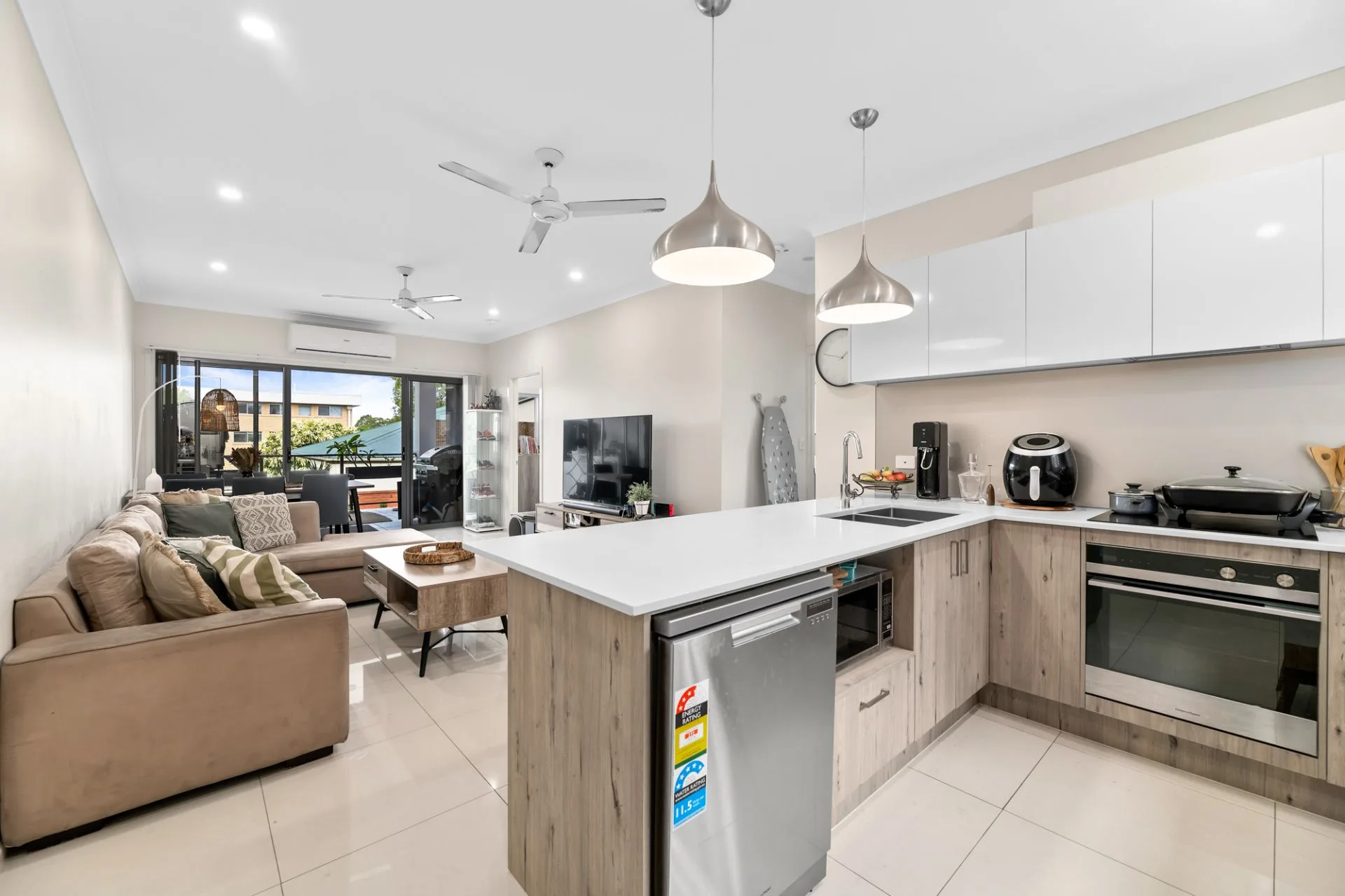 Balcony access is also on offer in the light-filled owner’s suite, alongside a walk-in robe and an ensuite with a shower, toilet and vanity. The guest bedroom has a built-in robe and easy access to the main bathroom, with a laundry nook for added convenience. A single, secure parking space is also on offer while ceiling fans, air-conditioning and recessed lighting are just some of the extra features you can enjoy.