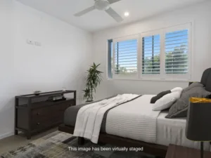 The apartment boasts over-sized windows, air conditioning and ceiling fans throughout and aluminium shutters which provide comfort and privacy. The kitchen is sleek and stylish with stone bench tops and a breakfast bar.