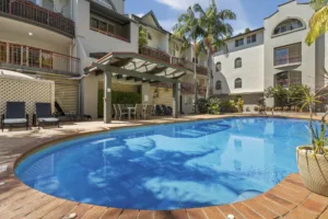 There is access to a large swimming pool, entertainment area and gym.