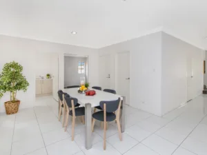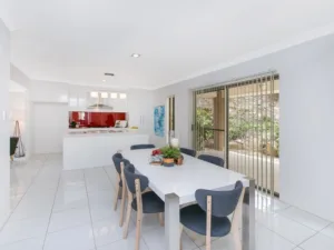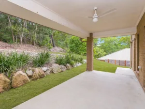 From the front patio, you’re welcomed into the air-conditioned lounge and family room that flows freely into the kitchen and dining area. A five-burner gas cooktop, a centre island and dishwasher are ready for the home chef and flow to a covered outdoor patio and large backyard.