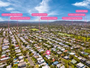 Perched in a lovely leafy street, Graceville station is 950m away, and you can enjoy quick strolls to the café precinct, family-friendly parkland and riverside walking paths. The Queensland Tennis Centre is 4 minutes away, Indooroopilly Shopping Centre is 6 minutes from your door, and you are 15 minutes to the CBD.